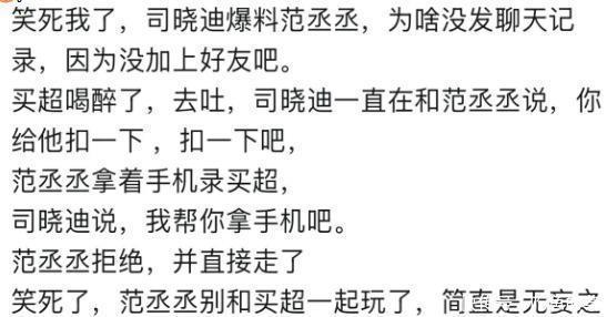 这场风波的关键破局点,在于范丞丞的“零交集”自保。司晓迪虽晒出与他、买超等人的聚会合照,还称其是“青春唯一喜欢的男孩”,却始终拿不出半句聊天记录佐证关系。真相简单又直白:两人压根没加过好友,从根源上切断了聊天记录曝光的风险,成为9人中唯一的“安全区”。